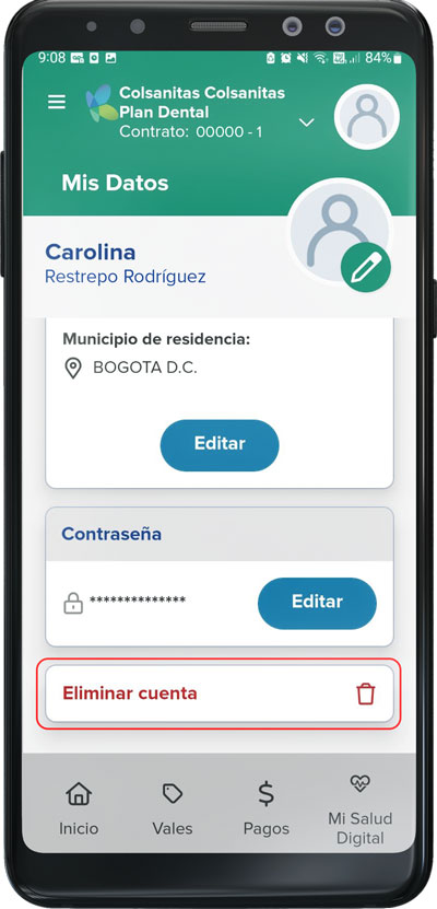 ¿Cómo eliminar mi cuenta de la app Colsanitas?